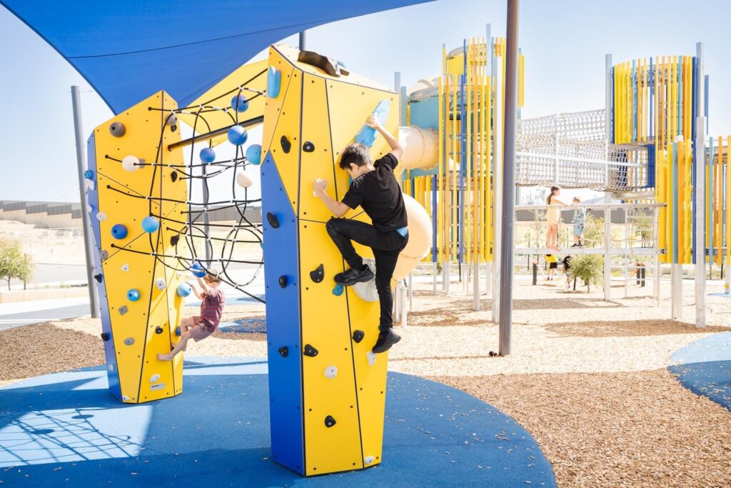 “Unlike traditional high-rise play equipment, our bouldering structures offer excellent visual permeability. For architects and master planners, this means these units can be placed in central plazas or park heartlands without blocking the ‘sightlines’ of surrounding architecture or retail storefronts. We specify a minimum safety fall zone of 2.9m, which should be finished with high-density EPDM or high-performance impact flooring to ensure full compliance with international safety standards while matching your project’s landscape palette.”