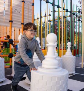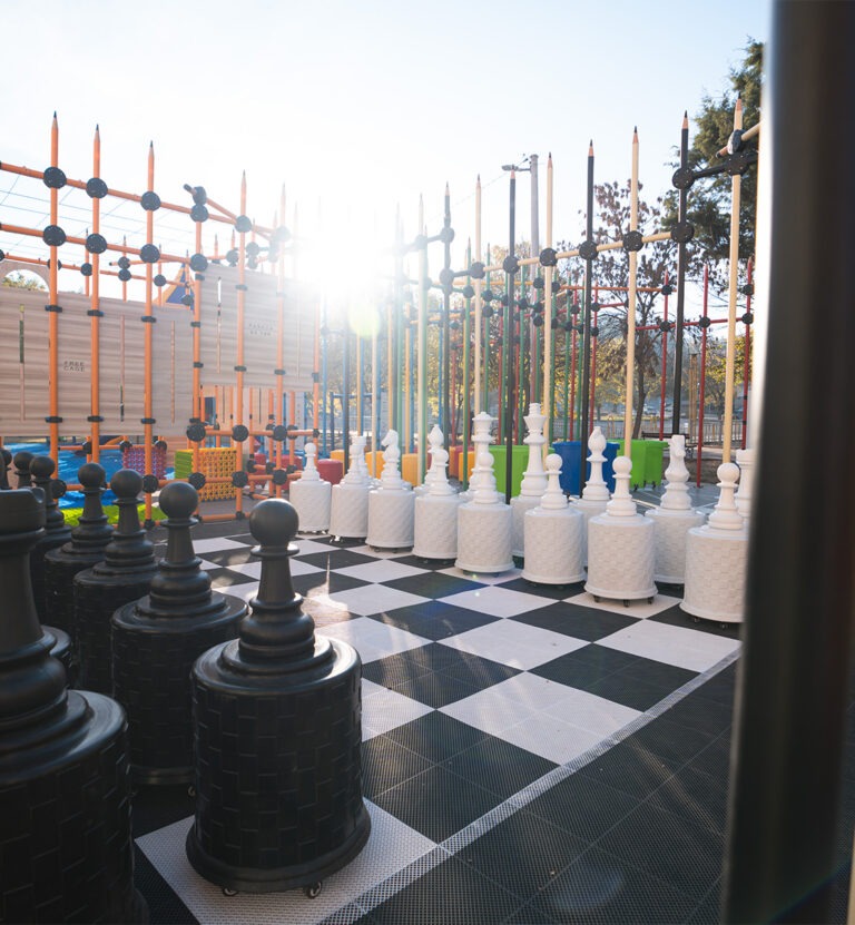 OUTDOOR CHESS GAME – is the ultimate classic two-player strategy game, scaled up for public enjoyment! Played on a large 64- square board, each player commands sixteen durable pieces —from the King and Queen to the Pawns. The objective is to checkmate your opponent’s King. This engaging, larger-than-life version encourages community focus, logic, and strategic planning in an open-air setting.