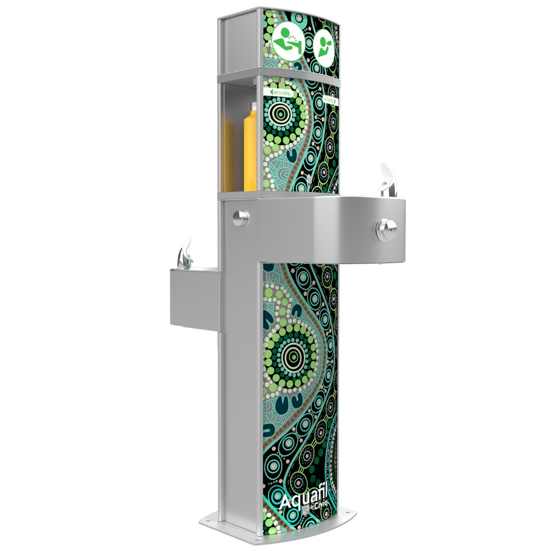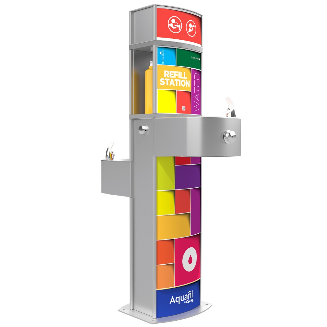 Dual-height fountains and bottle refill stations cater to all, while personalised art panels transform water breaks into moments of inspiration.