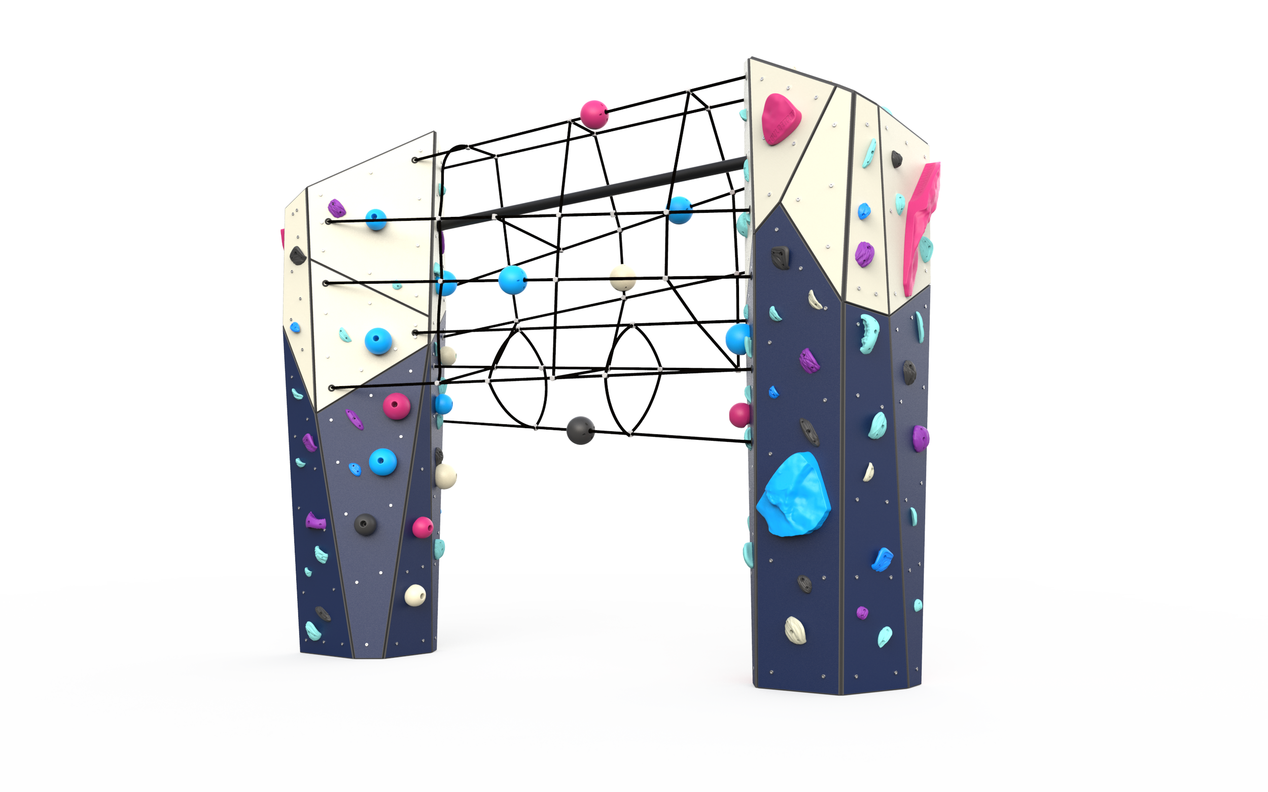 The Nexus Apostle takes the signature geometry of our Apostle and weaves in something entirely new: dynamic rope elements. As the smallest footprint in the Nexus series, it’s the perfect entry point for combining the movement and problem-solving of bouldering with the tactile, flowing challenge of rope play.
